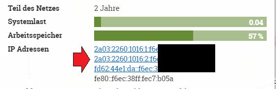 Unter 1) fühgen wir die IP Adresse, in unserem Fall kann man die IPv6 von der Karte ablesen.