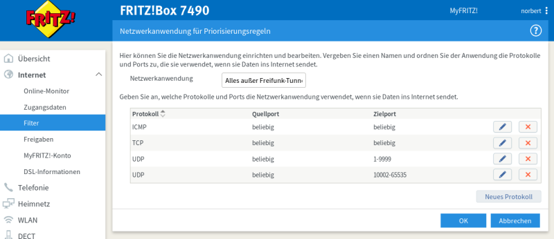 Internet → Filter → Priorisierung
