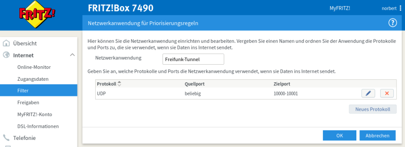 Warum „Alles außer Freifunk-Tunnel“ nicht bei „Echtzeitanwendung“ ganz oben eintragen? Geht auch. Drann bricht aber der Tunnel ganz ab, wenn die Last zu hoch ist.